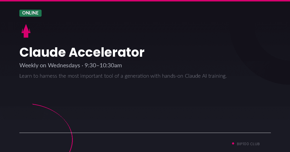 Ross leads this weekly Wednesday morning session helping BIP100 members master Claude AI; the tool reshaping how professionals work, think, and build. From prompt engineering to automating workflows, each session is practical and hands-on, giving members the skills to integrate AI into their daily business operations and stay ahead of the curve.