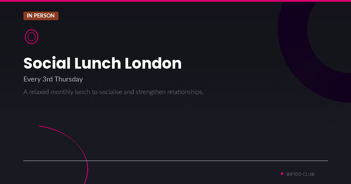 A relaxed monthly lunch for BIP members to socialise and strengthen relationships in London.